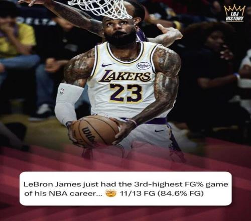 就在全明星投票话题热议之际,湖人球星詹姆斯正迎来自己的41岁生日(当地时间12月30日)。在湖人主场125-101大胜国王的比赛中,这是詹姆斯40岁的最后一场比赛,他交出了极为高效的表现——上场29分钟,13投11中,三分2中1,罚球1中1,砍下24分3篮板5助攻2抢断,正负值+20,84.6%的命中率不仅创下效力湖人时的新高,也是其个人职业生涯第三高。