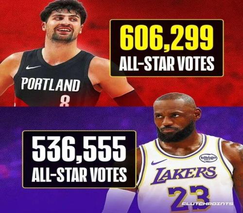 更引人注目的是,开拓者前锋阿夫迪亚以606299票高居西部第七,比詹姆斯多出近7万票。对此,美媒ClutchPoints不禁发文感慨:“二十年来,NBA始终遵循着一条不成文的规则,除了死亡和纳税,勒布朗·詹姆斯稳坐全明星票王宝座。看着他落后于一个首次冲击全明星的球员近七万票?这感觉像是系统故障。”