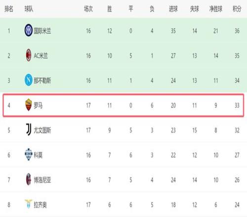 意甲最新积分战报争4激烈!罗马止住颓势超尤文1分重回前4