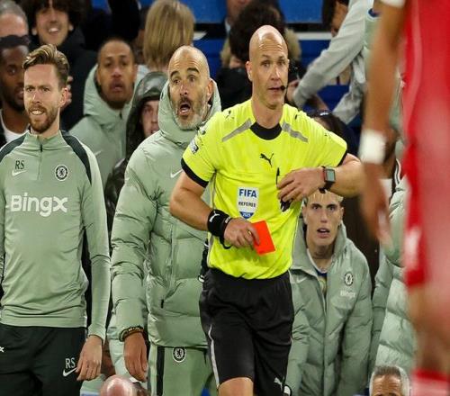 据WhoScored统计,切尔西在主裁判安东尼-泰勒执法下场均拿牌数最高,为2.36张。